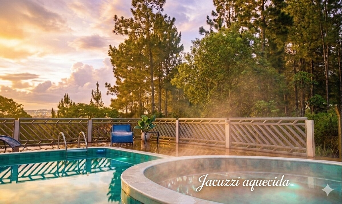 Descubra um refúgio privativo onde o luxo encontra a natureza. Esta casa de campo exclusiva oferece uma piscina particular e jacuzzi ao ar livre, perfeitas para relaxar sob o céu estrelado. Com vistas deslumbrantes do vale, lareira aconchegante e varanda gourmet, é o local ideal para desfrutar momentos inesquecíveis. Seja para uma escapada romântica ou uma pausa revitalizante, cada detalhe foi pensado para o seu conforto.