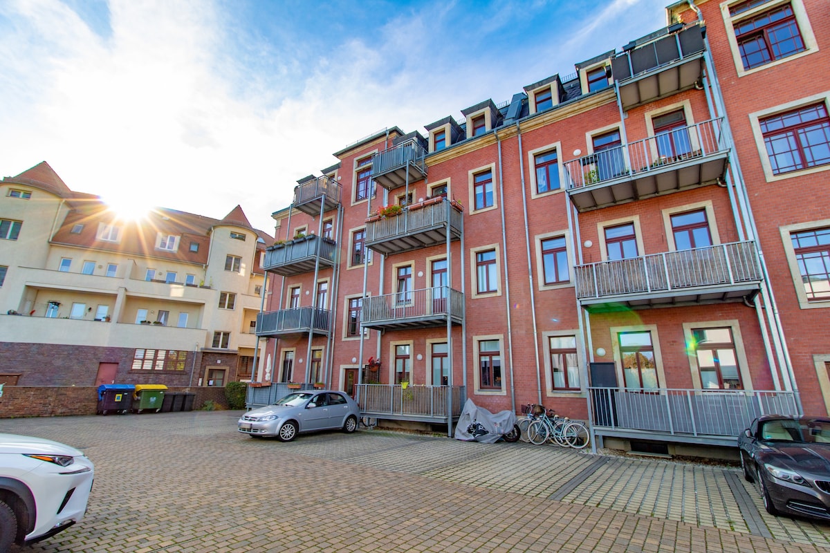Olá e bem-vindo à sua nova casa de férias no coração de Dresden. Você pode esperar um apartamento modernizado muito elegante e de alta qualidade de 3,5 quartos com 2 quartos, uma cama de casal adicional na sala de estar com vista para o jardim historicamente cultivado. Desfrute do sol da tarde no terraço com um jantar ou com uma taça de vinho e uma lareira no hidromassagem. Você encontrará tudo o que precisa para um momento inesquecível em Dresden no local.