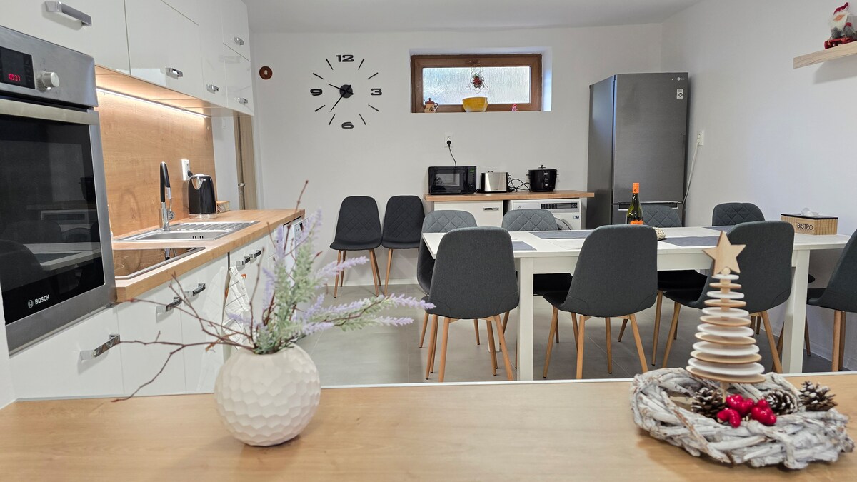 Um apartamento moderno e chique no meio de colinas ondulantes 'Myjavske Kopanice'. Localização tranquila com belas vistas e com uma varanda virada para o sul, um lugar perfeito para relaxar. O apartamento vem com uma cozinha totalmente equipada, TV smart e máquina de lavar/secar.