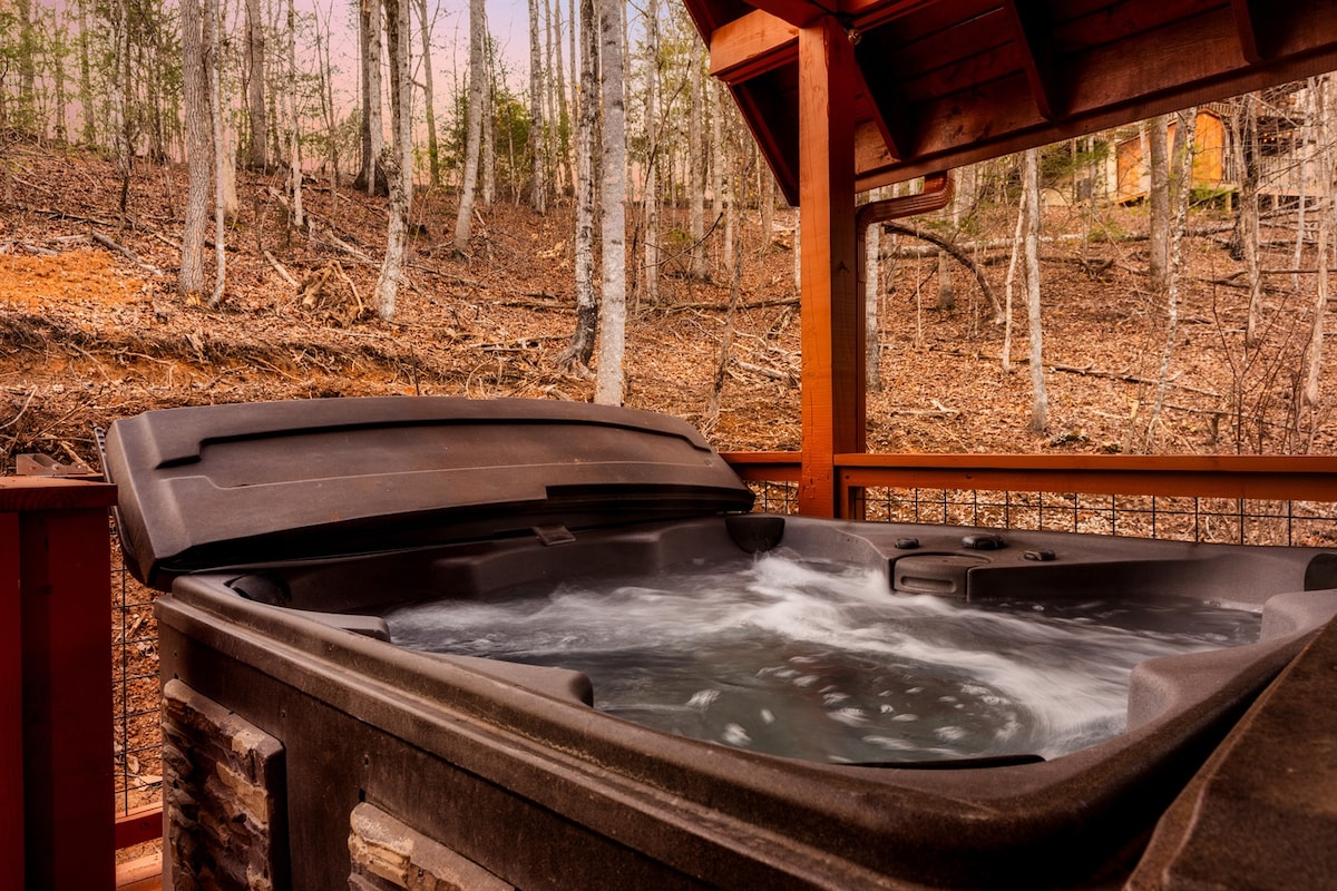 Banheira de hidromassagem privativa na cabana Blushing Bear