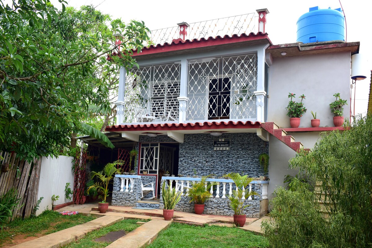 Bem-vindo à sua casa no coração de Viñales! 🌿 Nossa suíte foi projetada para quem busca o equilíbrio perfeito entre natureza intocada e conforto moderno. Localizado em uma área tranquila, mas a uma curta distância do centro da cidade, aqui você vai desfrutar da paz do campo com todas as comodidades. Somos uma das poucas acomodações em Cuba com um sistema solar independente. Esqueça as falhas de energia: você terá eletricidade, ventilação e carregamento de dispositivos garantidos durante toda a sua estadia.