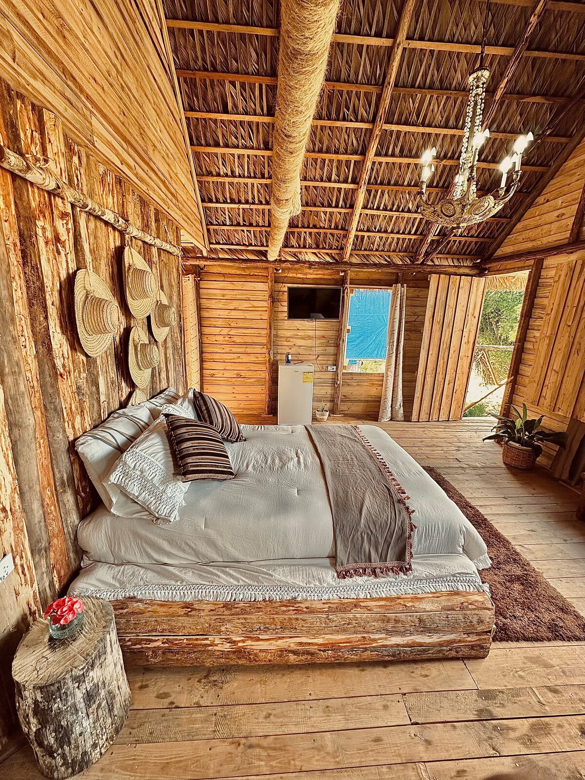 Nossa cabana de madeira é o lugar perfeito para os exploradores desfrutarem de uma noite rural única em meio a animais selvagens. A decoração rústica e elaborada do local, o lustre suspenso, a gloriosa cama queen size e o banheiro privativo que embelezam o quarto farão com que você desfrute de uma estadia maravilhosa. As janelas, com vista panorâmica para o ar livre, o rio e as plantações de tabaco, proporcionarão a experiência mais incrível ao acordar de manhã.