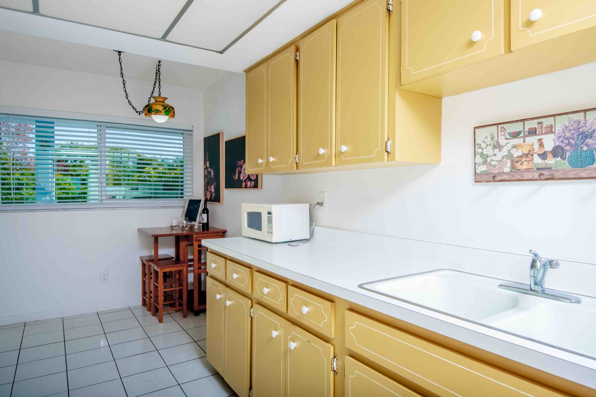 Aproveite sua estadia nesta casa tropical dos anos 1950 em um bairro tranquilo, a apenas 3 milhas da praia. Duas cadeiras de praia premium, refrigerador, guarda-chuva e muito mais para usar durante sua estadia! Sair rodeado pela vida vegetal tropical no quintal. Luzes de corda aconchegantes cobrem a cerca de privacidade de 6 pés no quintal. Isso faz parte de uma unidade duplex (outra unidade está anexada a esta), mas tudo é privado dentro e fora. (Não são permitidos animais de estimação:-))