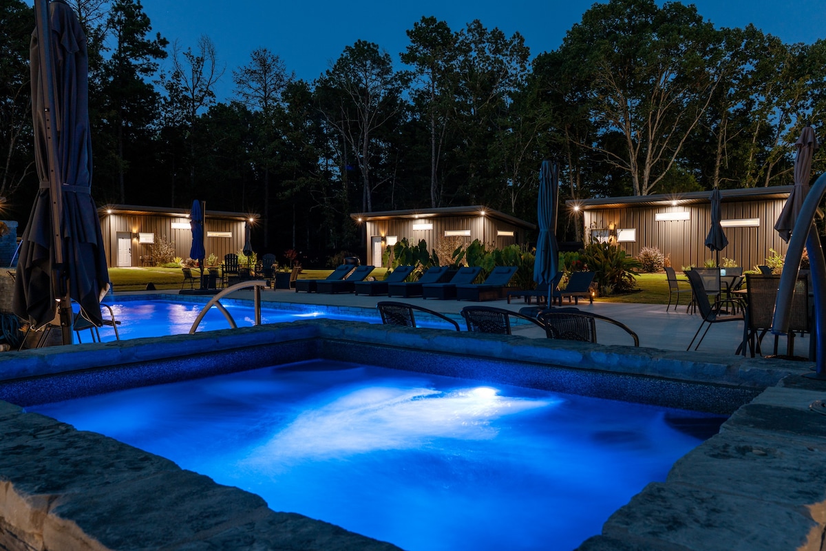 "Um abraço." "Um ninho de amor." "Não queríamos ir embora." Desfrute de um momento muito especial em nossa cabana na floresta! Relaxe neste espaço calmo e cheio de estilo. Desfrute de uma caminhada fácil de 15 minutos em nossas trilhas. Esta nova construção lhe dará o espaço que você precisa para se sentir cercado pelo melhor da natureza! Se você procura um retiro pessoal, uma escapada romântica, tempo em um dos belos lagos da nossa área ou uma visita cheia de diversão à histórica Hot Springs, Arkansas, belas memórias serão feitas aqui.