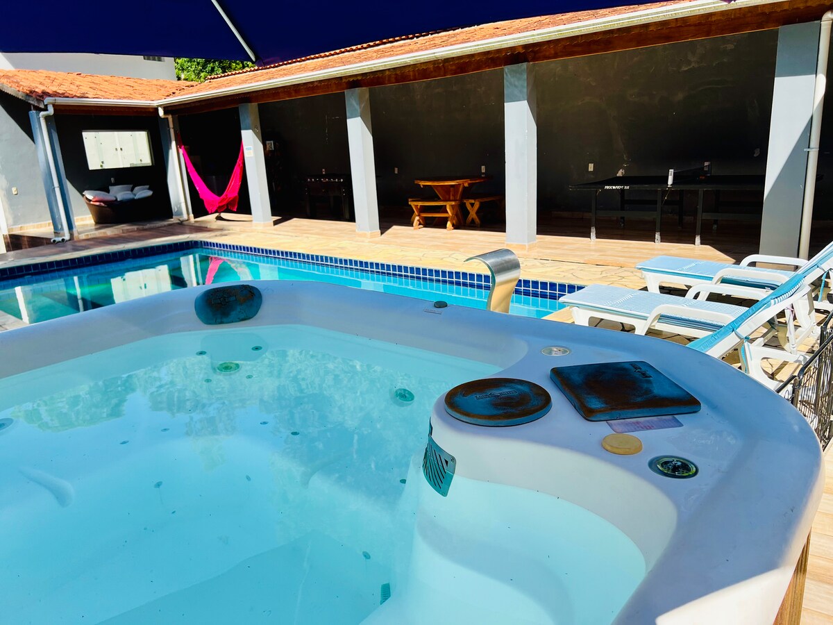 Encante-se com esta linda casa de campo, confortável e localizada perto do Circuito das Águas. Com ar-condicionado quente e frio nos quartos, piscina com aquecimento solar , além de banheira de hidromassagem para 7 pessoas ao lado da piscina, este refúgio oferece conforto, tranquilidade e relaxamento junto à natureza. Perfeito para quem busca lazer, descanso e contato com a natureza. Aproveite ao máximo cada detalhe deste refúgio encantador.
