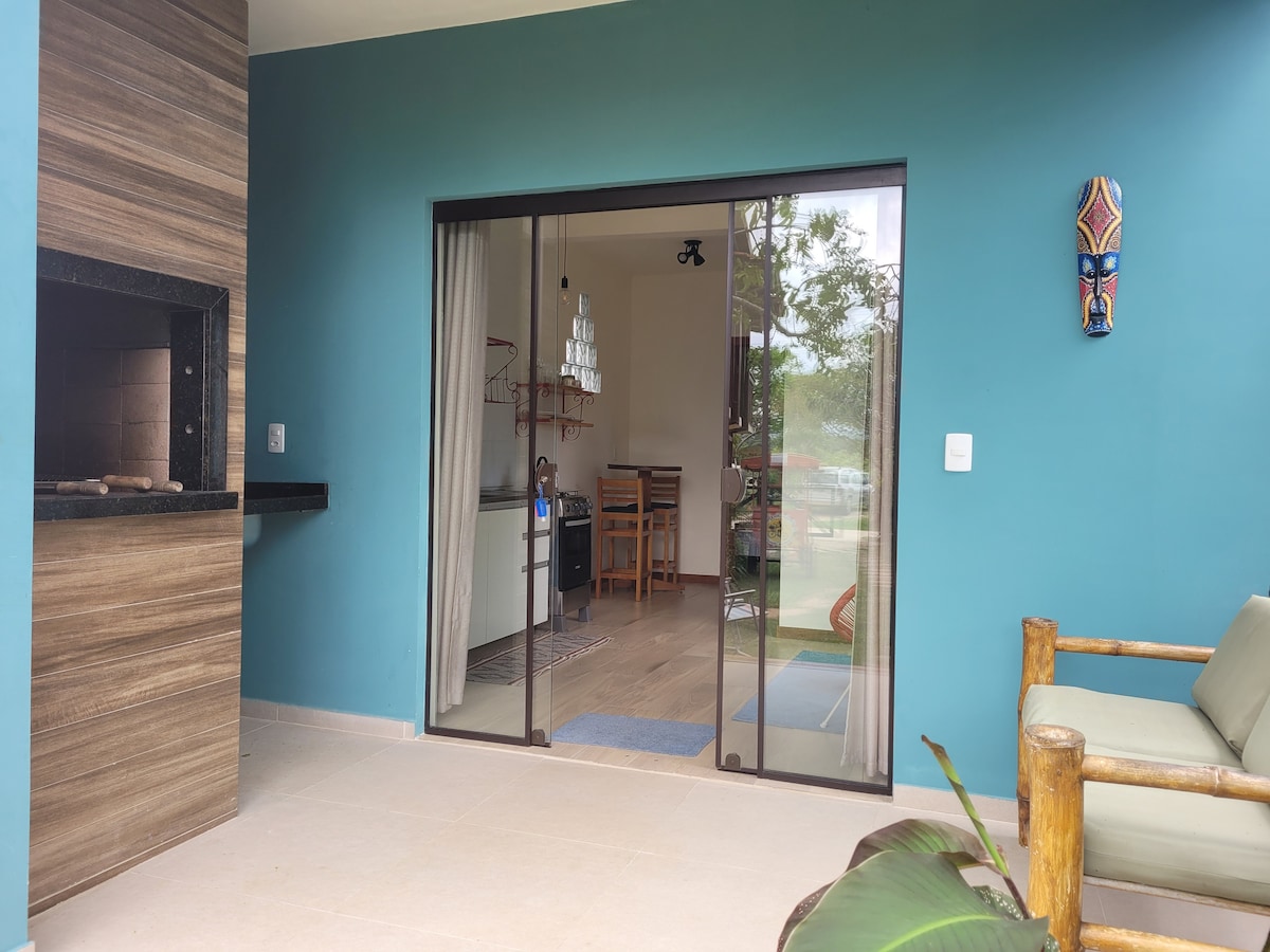 Casa ampla com 3 dormitórios. Primeiro quarto: 1 suíte com cama baixa queem, armário, ar condicionado. Segundo quarto com cama casal, armário e ar condicionado. 1 banheiro social. Segundo andar: mezanino com sofá cama e smart tv. Terceiro quarto com cama de casal queem, armário e ar condicionado. Sala e cozinha conjugada. Área externa com churrasqueira, redes, sofás rústicos para relaxar. Um banheiro sem chuveiro. Jardim, ducha externa. Estacionamento.