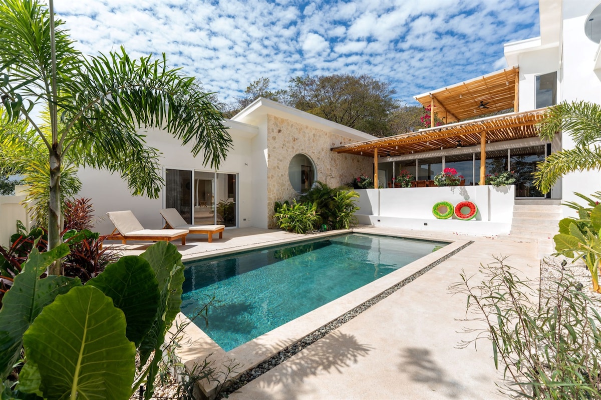 Acorde com sons da selva, vista para o mar e desfrute de entardeceres dourados da sua piscina de borda infinita privativa. Esta vila moderna oferece total privacidade, vistas deslumbrantes para o mar e fácil acesso às praias de Tamarindo — a mistura perfeita de natureza e conforto. • 🌊 Vistas para o mar e a selva • 🏊 Piscina de borda infinita privativa • ❄️ Ar condicionado em todos os quartos • 📶 Wi-Fi rápido (ótimo para trabalho remoto) • 🚗 Fácil acesso a praias e restaurantes
