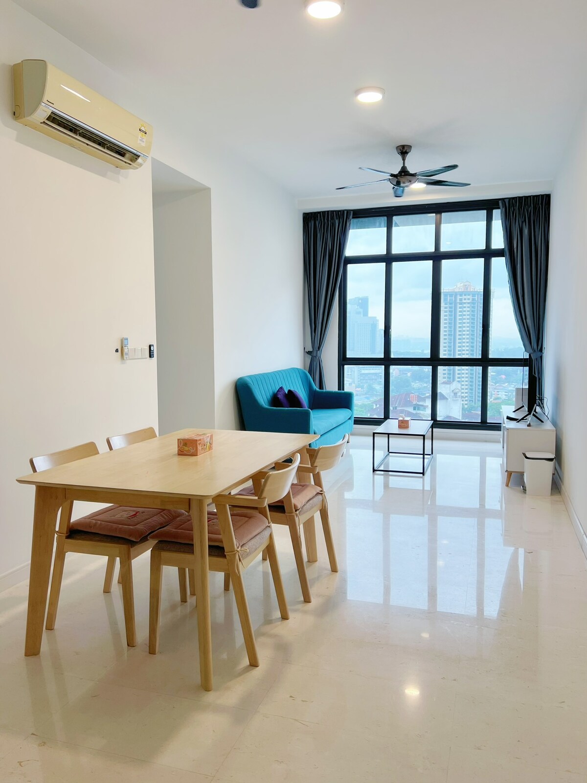 Nossa unidade adequada para estadias em família com 4 quartos e está localizada no piso alto com vista para a cidade de tirar o fôlego! É conveniente visitar e explorar a cidade de JB, pois estamos localizados no coração da cidade de Johor Bahru. Rodeado por lojas convenientes, restaurantes, centros de lavagem de carros e massagens. Caminhada a 3 minutos a pé da rodoviária -5 min até o Hospital Sultan Aminah -5 minutos a pé do Thistle Hotel -5min CIQ, City Square, Angry Bird Park -5 minutos para o centro histórico de JB -15 minutos para Legoland -10 minutos do KSL Mall e Mid Valley