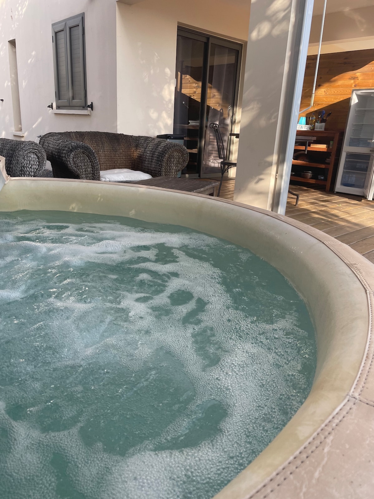 Acomodação perto da praia, acessível a pé, equipada com uma jacuzzi privativa com vista para o mar e a montanha a partir da jacuzzi. Fica no primeiro andar. Desfrute de uma localização excepcional perto da lagoa. Festas não são permitidas. A banheira de hidromassagem está acessível a qualquer momento, no entanto, os jatos de massagem estão programados até as 21h e retomam às 8h. TAXA COM DESCONTO POR DURAÇÃO