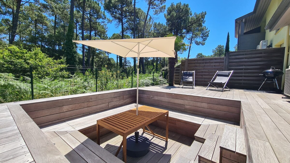 Venez découvrir la dépendance de notre maison, dans un quartier très calme, au pied de l’océan. Cette extension neuve est à 300 m de la plage, en bord de forêt et complètement indépendante de notre logement, idéalement équipée pour passer un agréable séjour. Lave-linge, lave-vaisselle, draps et serviettes sont fournis. Nous proposons 2 vélos à la location : 10€ la journée par vélo. Vous avez à votre disposition un local fermant à clé pour y déposer planches de surf, matériel de golf, vélos.