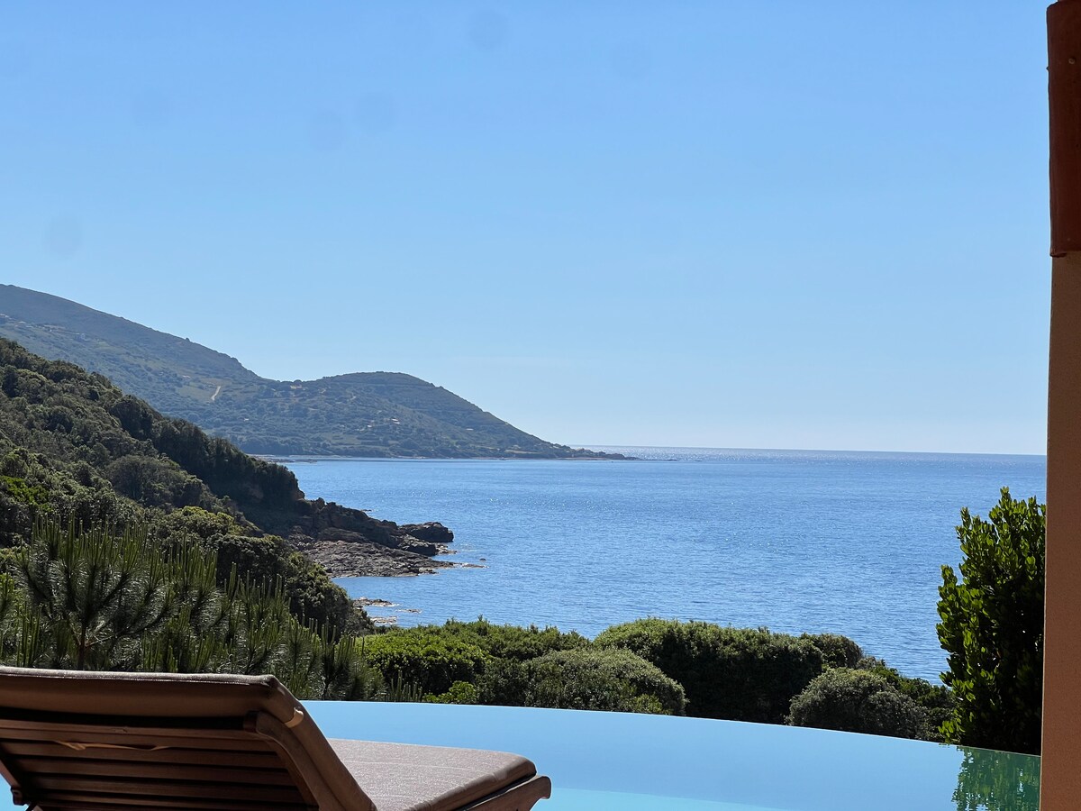 Charme e serenidade em um panorama excepcional A partir de um terraço de 80 m ², você descobrirá vistas panorâmicas do mar e da esfoliação. Você terá seu café da manhã e refeições e desfrutará de sua piscina do maravilhoso pôr do sol sobre o Mar Corsicano e terá um aperitivo em uma sala de estar com vista para o vale sempre de frente para o mar. Você pode descobrir as espécies endêmicas dos maquis e desfrutar de alguns lugares sombreados, inspirando tranquilidade e descanso.