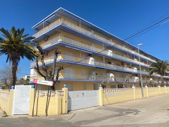 A quatro minutos a pé da praia de areia, apartamento decorado com cuidado, quartos muito iluminados durante todo o dia. Terraço acolhedor com charme e vista para uma área verde com palmeiras, com grama artificial macia e fibras naturais. Com ar condicionado, SmartTV e Internet de fibra, cozinha equipada com tudo o que você precisa. Acesso às melhores piscinas privadas de toda Denia, com escorregadores. Aberto o ano todo, com bar de praia e salva-vidas na temporada. 💻 em | nstg. entrepalmerasdenia