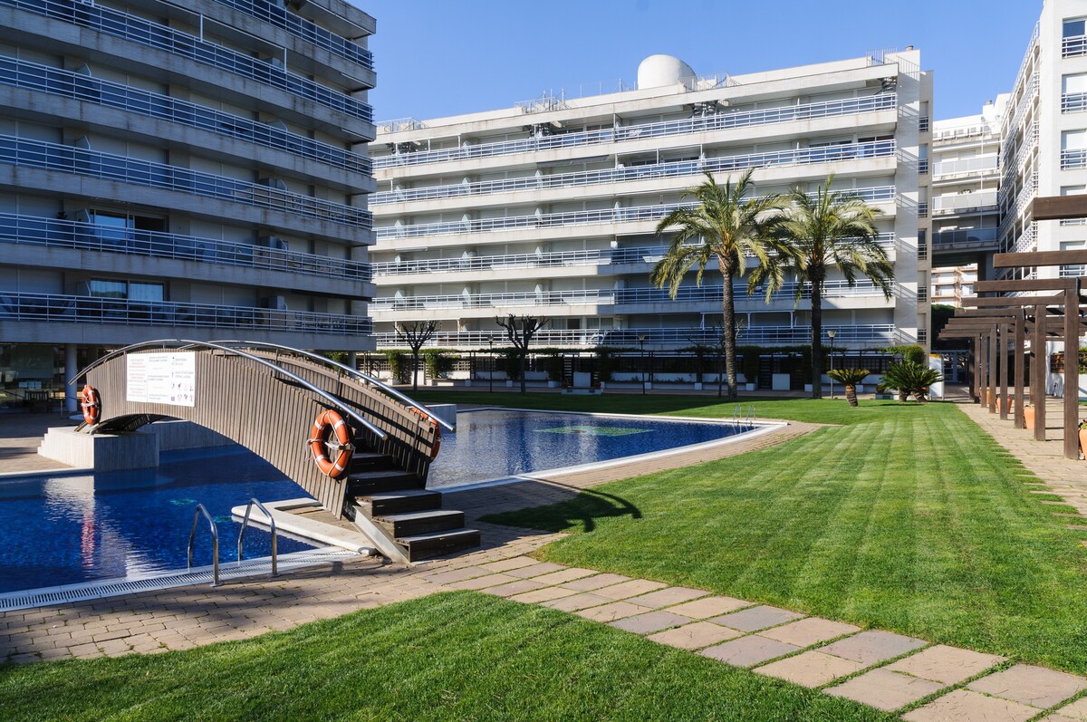 Belo apartamento estúdio em Blanes, Costa Brava, completamente renovado na segunda linha da praia, com piscina comum, área de lazer infantil supervisionada e fechada, ideal para famílias. Com 2 camas de casal e acomoda 4 pessoas. Possui elevador, TV, kitchenette com fogão cerâmico, geladeira, micro-ondas, forno, freezer, louça / talheres, utensílios / cozinha, cafeteira . Perto de todas as comodidades.