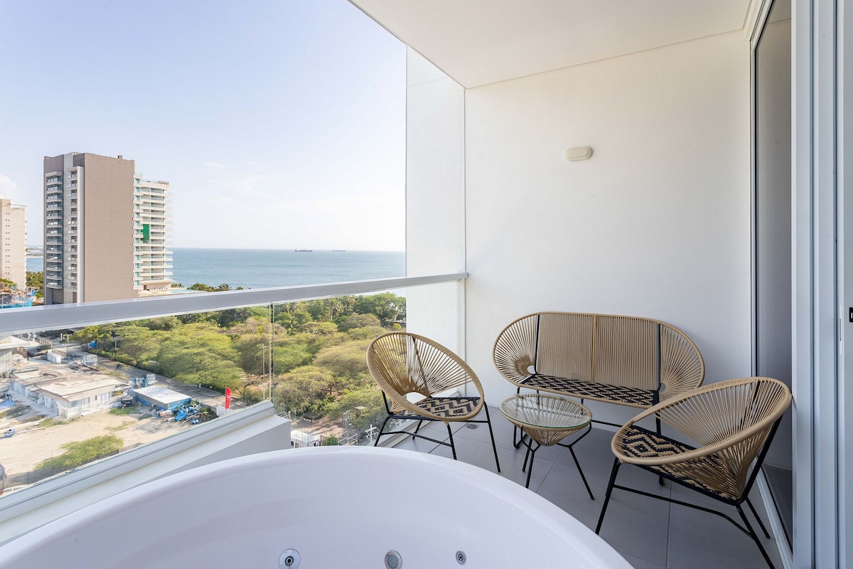 🌊 Desfrute de Santa Marta a partir de um 16º andar em um clube de praia ideal para familiares ou amigos. Inclui: 🛁 Banheiras de hidromassagem. 🛏️ 3 quartos com camas queen size e de casal. Cozinha 🍳 Equipada. 🌅 Varanda com vista lateral para o mar. 🏖️ Acesso direto à praia. 🏊 4 piscinas. 🏋️ Academia. 🧖 Spa e áreas úmidas 🛝 Área infantil. 🍽️ Restaurante com café da manhã 👩💻 Coworking. 🔐 Ambiente seguro e tranquilo.