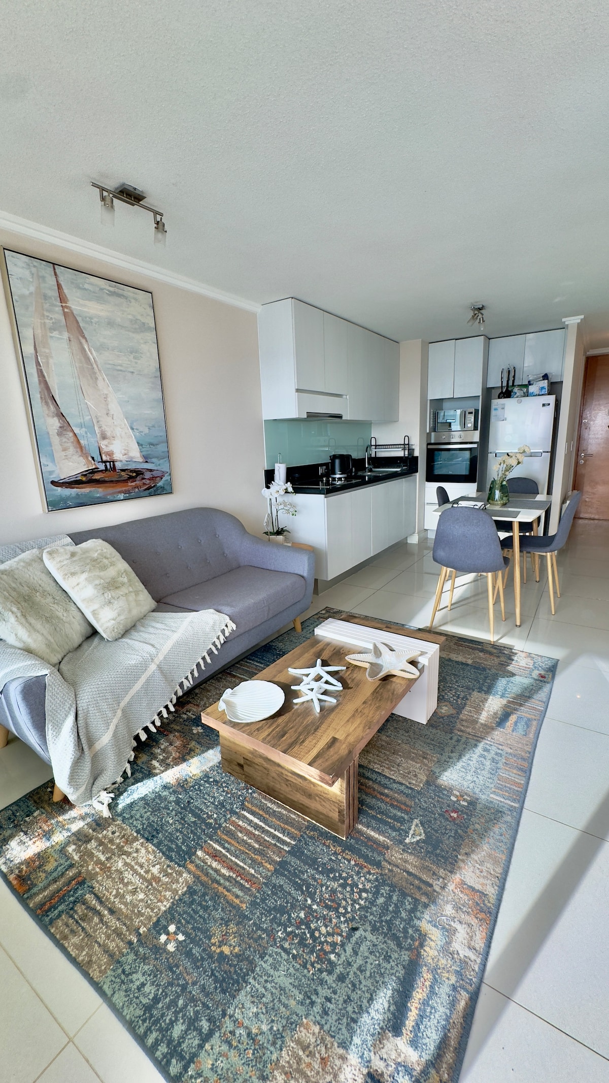 Você vai adorar meu apartamento (100% ELÉTRICO), novo e com uma decoração moderna, confortável e totalmente equipado, para que você possa se sentir em casa (internet, Wi-Fi, Netflix, TV a cabo). Fica perto dos principais pontos turísticos, restaurantes e comércio. O edifício tem uma piscina ao ar livre, academia e lavanderia. Temos estacionamento. O transporte coletivo passa na porta, com destino a Concón, centro de Viña del Mar, Valparaíso.