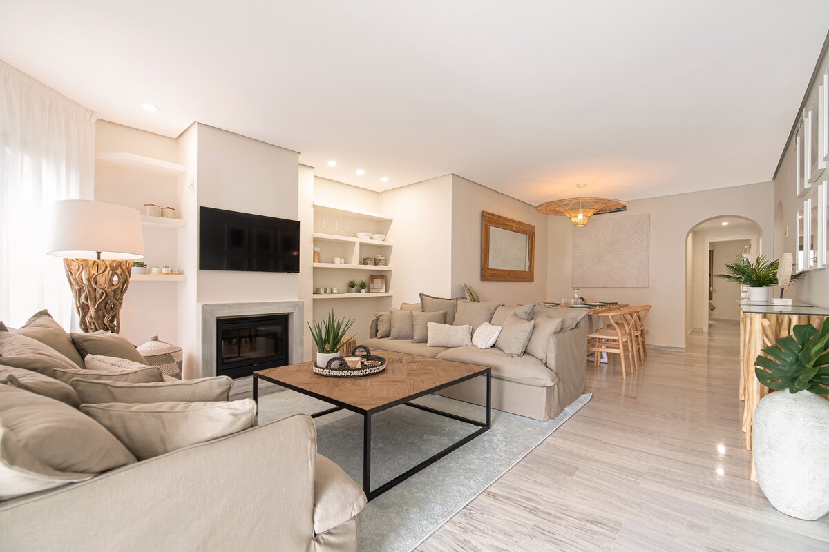 Oazis Riviera – um apartamento elegante no complexo Jardines de las Golondrinas com terraço e vista para o jardim. Bem-vindo ao Oazis Riviera – nosso espaçoso e bem decorado apartamento de 100 m² com um terraço ensolarado com vista para um jardim pitoresco. Localizado no tranquilo e verdejante bairro de Elviria em Marbella, bem ao lado da Playa de la Vibora e da reserva natural Duna Las Golondrinas, nosso apartamento é perfeito para hóspedes que buscam paz, conforto e proximidade da praia e das atrações locais.