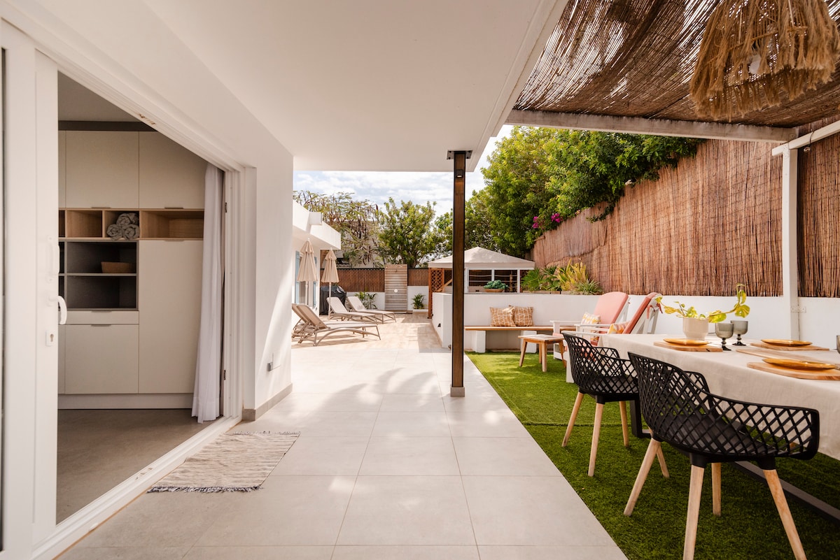 O Amapola Palms é um apartamento à beira-mar com um estilo único inspirado na arquitetura de Palm Springs dos anos 1950. Localizado no térreo, oferece acesso direto ao calçadão à beira-mar e uma vista agradável para o oceano. Seu terraço privativo com móveis de exterior é perfeito para relaxar, tomar sol ou desfrutar de refeições ao ar livre. Uma opção ideal para casais ou famílias com filhos que buscam conforto, design e ótima localização à beira-mar.