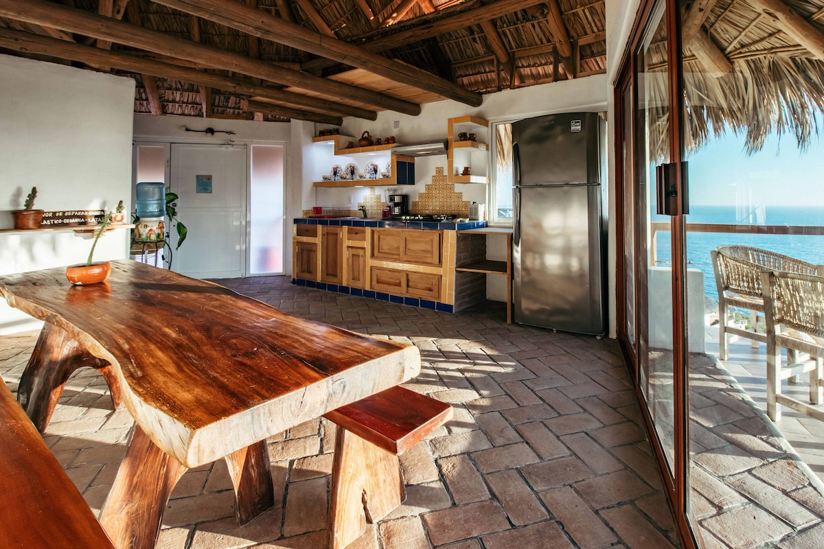 Acordar neste lugar é um sonho! A casa fica bem à beira-mar para desfrutar dos melhores pores do sol todos os dias. Tem dois níveis. O quarto está no topo, bem como o espaço de trabalho (Starlink) e redes para descansar. O teto é uma ótima palapa. A casa tem uma pequena piscina privativa de onde você pode desfrutar da melhor vista sobre Playa Mermejita. A casa é muito aberta para desfrutar da frescura do vento e das melhores vistas.