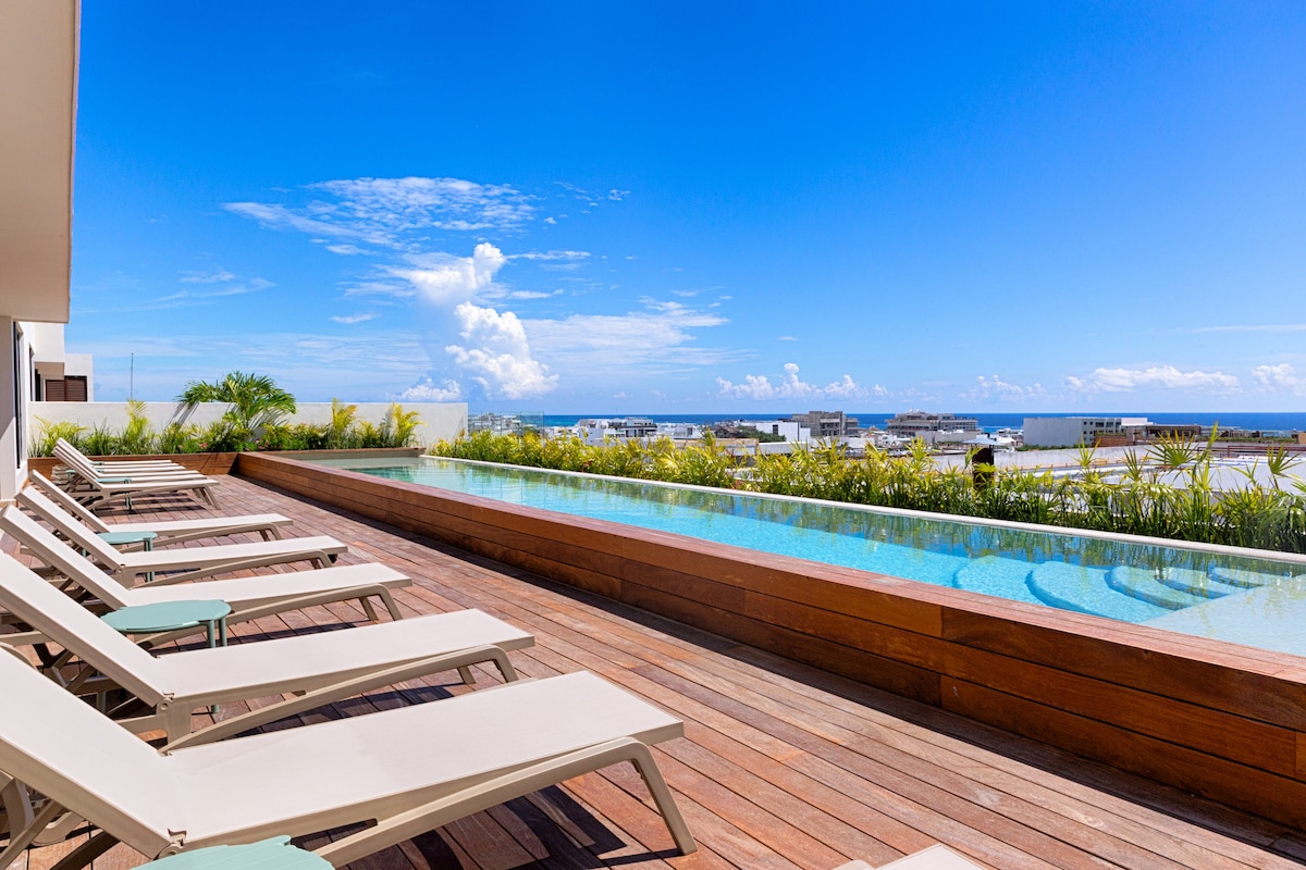 Bem-vindo à sua casa no paraíso! Este condomínio moderno está localizado a poucos passos da 5ª Avenida, dos melhores restaurantes, lojas e das deslumbrantes praias de Playa del Carmen. Desfrute de comodidades em estilo resort, incluindo 3 piscinas no terraço com vista para o mar, academia, spa, bar, concierge e segurança 24h. Se você está aqui para relaxar ou se aventurar, esta é a base perfeita para experimentar Playa del Carmen com conforto e estilo. Ideal para nômades digitais, estadias longas ou férias.