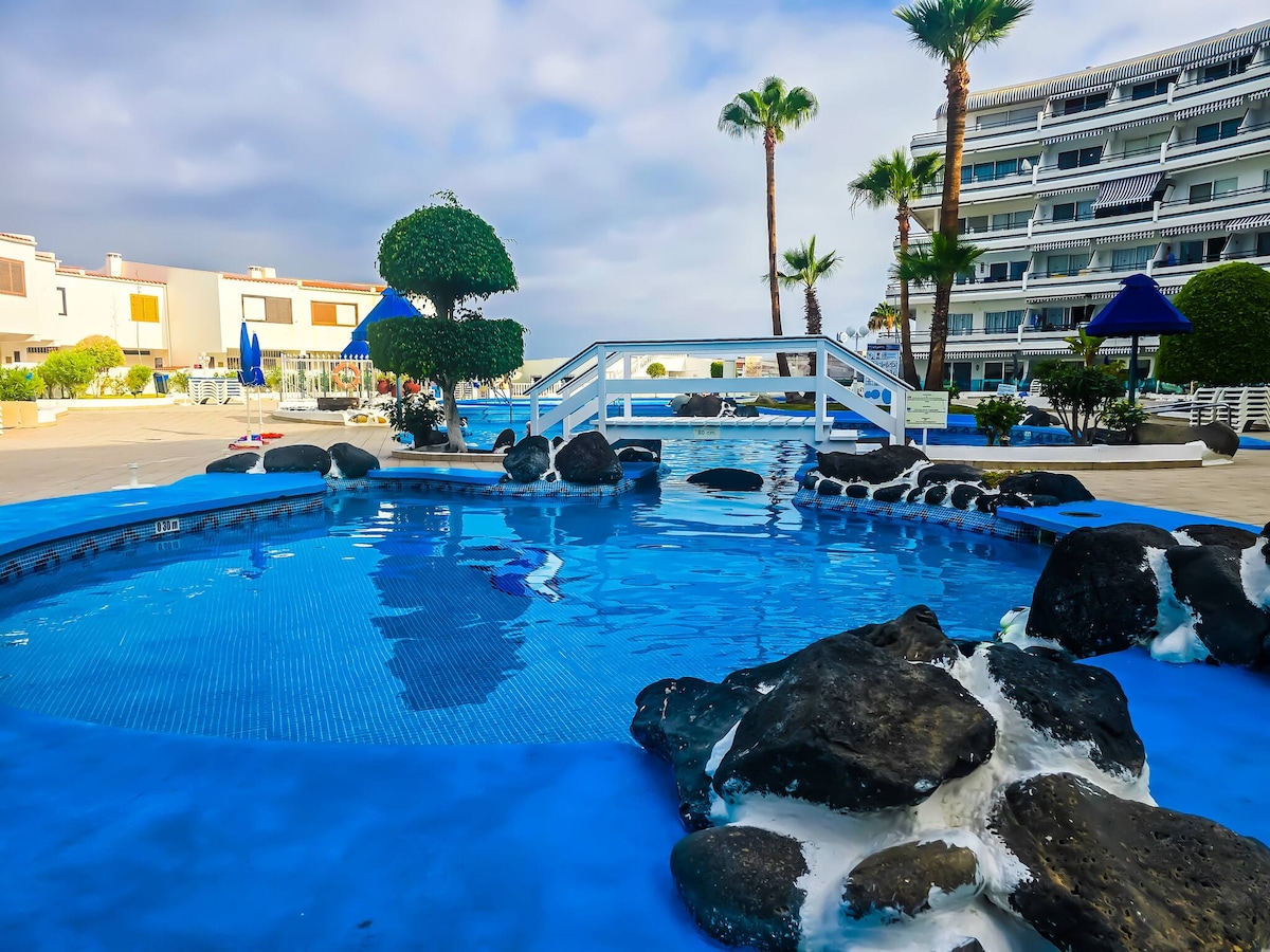 Fantástico apartamento novo, privado e muito tranquilo com 2 piscinas, fica a 4 minutos da maravilhosa praia branca de La Pinta, ao lado de Puerto Colon, cercado por lojas, restaurantes, bares, a 600 metros do parque aquático Siam Park O apartamento tem um quarto com 2 camas de solteiro, uma sala de estar com um sofá-cama para 2 pessoas, uma cozinha nova e totalmente equipada e um banheiro com chuveiro, um terraço com belas vistas para a piscina, ideal para famílias.