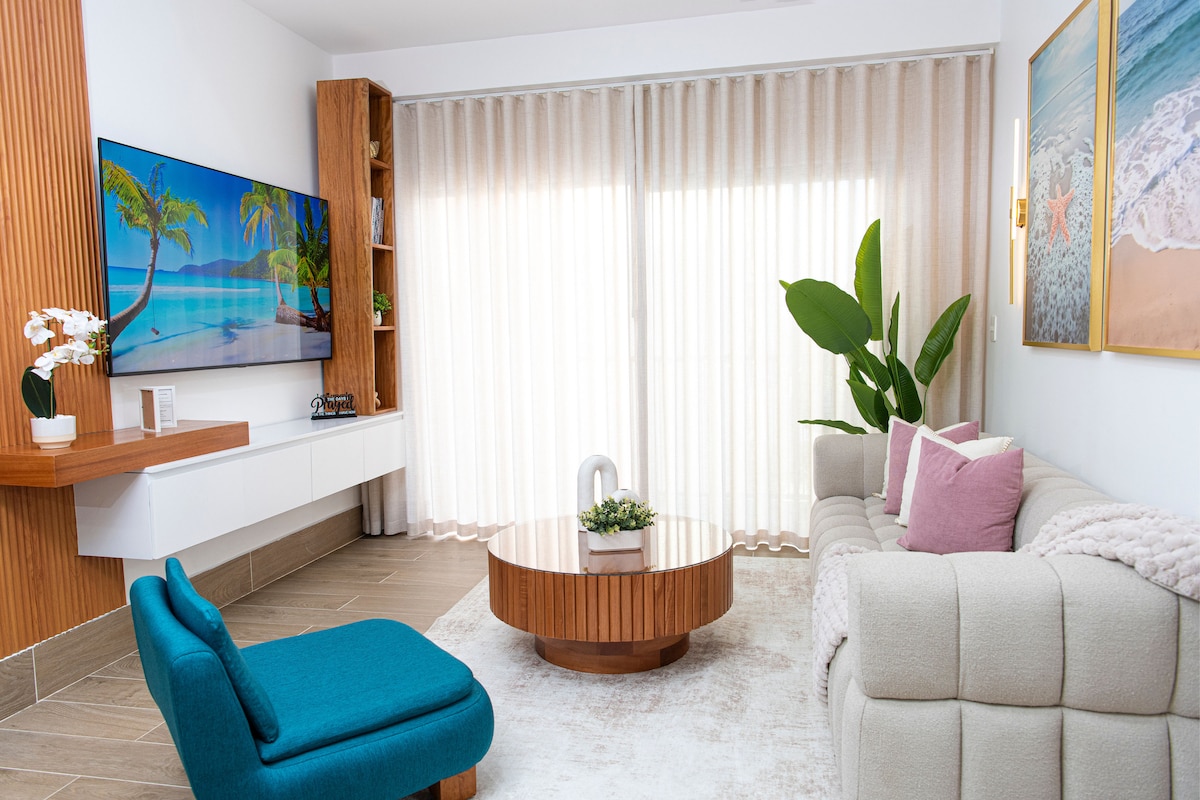 Zafiro é um apartamento de 2 quartos, luminoso e acolhedor, no segundo andar, na exclusiva comunidade fechada de Green One, Playa Dorada, oferecendo segurança 24 horas e uma atmosfera tranquila. A poucos minutos da praia, possui decoração elegante, uma área de estar confortável e uma varanda privativa para relaxar e descontrair. Totalmente equipado com Wi-Fi de alta velocidade, ar condicionado em todos os quartos, cada quarto dispõe de TV inteligente, uma cozinha moderna, ideal para hóspedes que procuram conforto, estilo e paz.