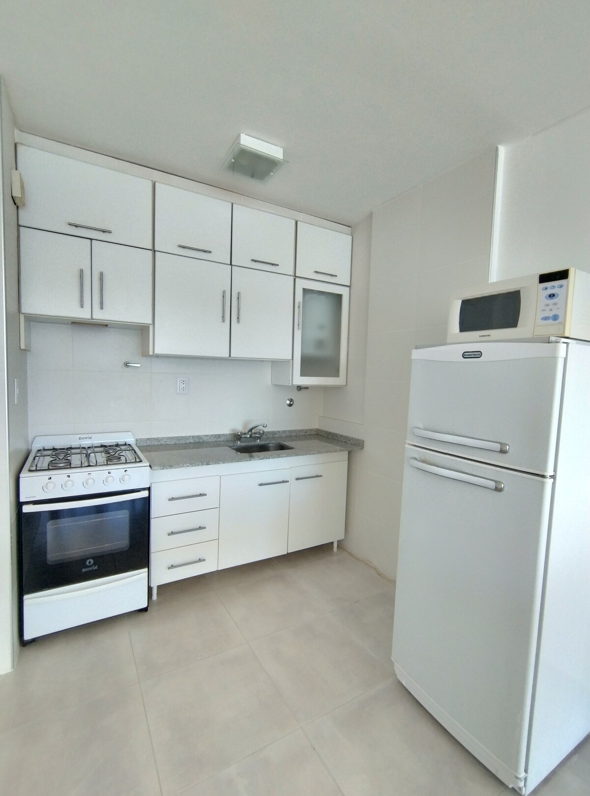 Estúdio com varanda e churrasqueira no centro