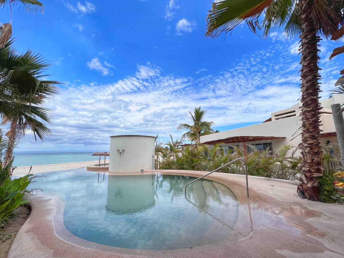 Estúdio Unidade #1 - 'Casa Royce' é em frente à praia, uma experiência romântica a 25 minutos de distância do La Paz Malecon. Localizada em Maravia Country Club Estates perto da área da Praia de Tecolote com vista panorâmica da famosa "Isla Espirito Santo" e do Mar de Cortez. Aluguel de carro altamente recomendado. Você está a 1 minuto de carro da praia, 5 minutos de carro até as 10 MELHORES praias do México "Playa Balandra". Propriedade Off-Grid com Wi-Fi Starlink, Piscina Privada,Mini Golfe. Condomínio fechado Segurança 24 horas, 7 dias por semana. AC incluso (maio-nov)