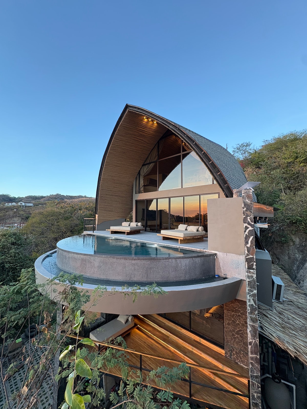 Recentemente reformado. Fique em uma bela vila com piscina privada de borda infinita, localizada em uma comunidade segura, perto das praias mais bonitas da Costa Rica. Completamente renovado em 2025, oferece confortos modernos e vistas deslumbrantes. • 2 quartos com ar condicionado e banheiros privativos • Espaço aberto com cozinha completa e sala de estar aconchegante • Sala de jantar ao ar livre para um pôr do sol espetacular • Wi-Fi, alarme e estacionamento cercado
