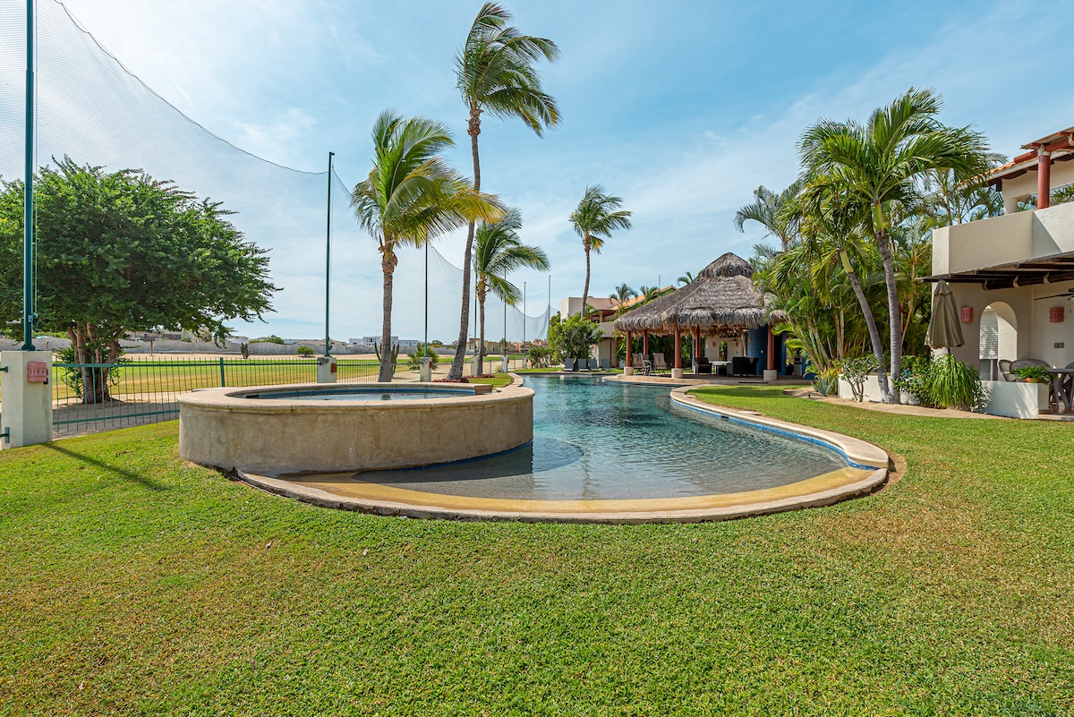 Em busca de uma viagem relaxante para Cabo? Quinta Pacífica é o seu lugar! Este apartamento de dois quartos fica em um belo condomínio fechado de apenas 16 casas com duas fantásticas piscinas familiares. Sabe qual é a melhor parte? Fica a poucos passos da praia, da faixa de hotéis de San José del Cabo e do centro da cidade. Desfrute de caminhadas na área, relaxando em seu espaçoso terraço com vista deslumbrante para o Campo de Golfe de Vidanta, ou apenas sente-se e ouça o oceano quebrando ondas à noite. Reserve 6 noites e ganhe 1 GRÁTIS!