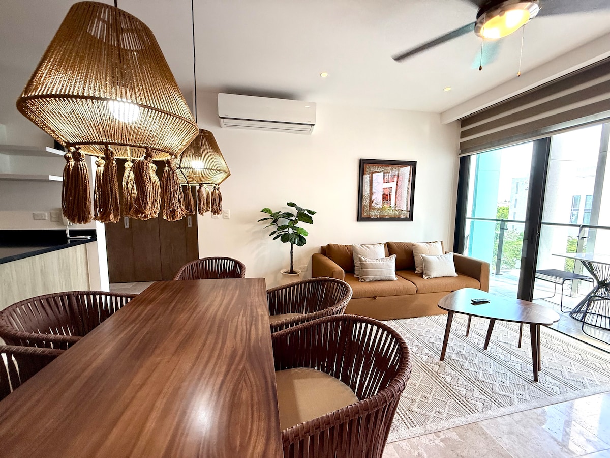 ★ PRONTO PARA ABRIL DE 2026 ★ ❗️POR FAVOR, LEIA TUDO❗️ Novo edifício exclusivamente situado na 5ª Avenida em Playa del Carmen (longe das multidões), a cerca de 200 metros / minutos a pé da praia. Ótimo para grupos/casais. ➤ Cercado de restaurantes e entretenimento ➤ A poucos passos da 5ª Avenida e da Praia Pontuação de➤ caminhada 92/100 perto de tudo ➤ Piscina privativa com espreguiçadeira/churrasqueira/área de jantar ➤ 3 varandas privativas ➤ Elevador ➤ Piscina no terraço ➤ Cozinha Equipada ➤ Jantar para 6 pessoas ➤ Máquina de lavar roupas ➤ Continue lendo abaixo👇