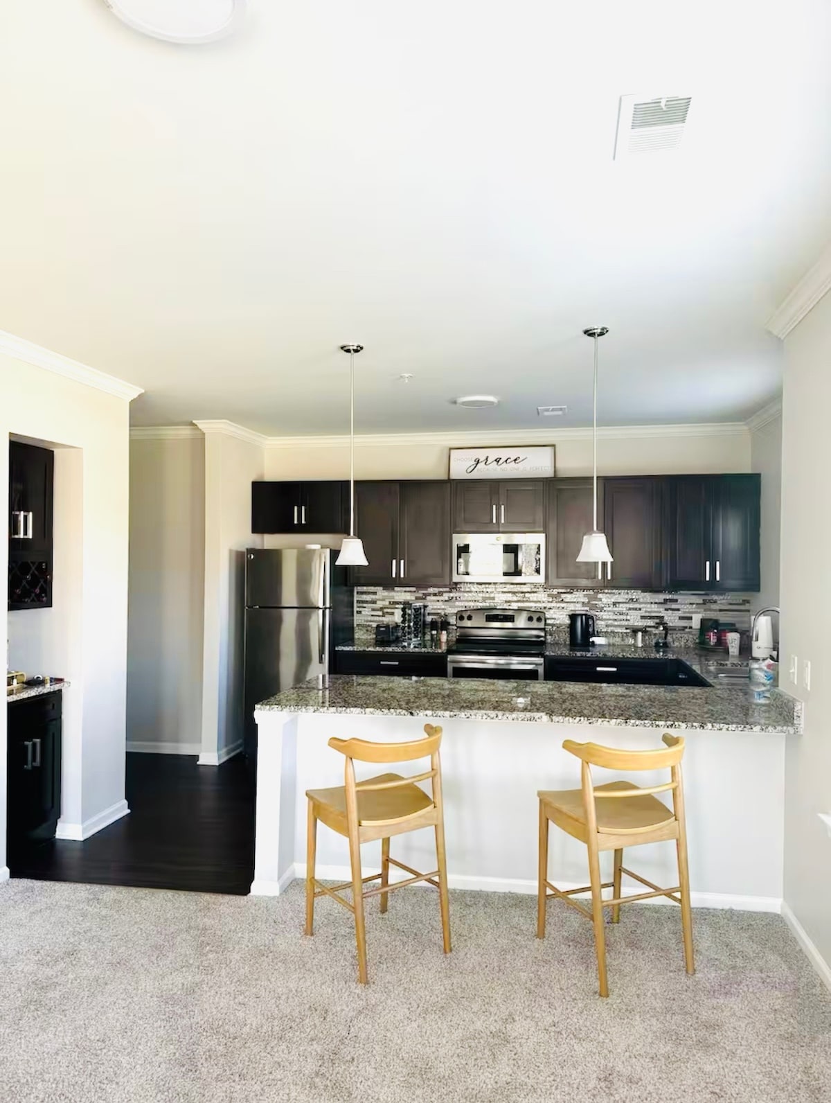 Relaxe nesta casa de campo recém-reformada e repleta de arte, a poucos minutos de restaurantes, lojas e entretenimento. Dois quartos king com TVs inteligentes são uma ótima opção para dois casais ou uma pequena família. Desfrute da cozinha totalmente equipada ou grelhe no pátio privativo. O porão serve como um lounge e espaço de escritório e está equipado com uma TV, sofá, escrivaninha, lavanderia e banheiro completo. Caminhe até a piscina da comunidade ou vá às quadras para um jogo de basquete, tênis ou pickleball com equipamentos fornecidos.