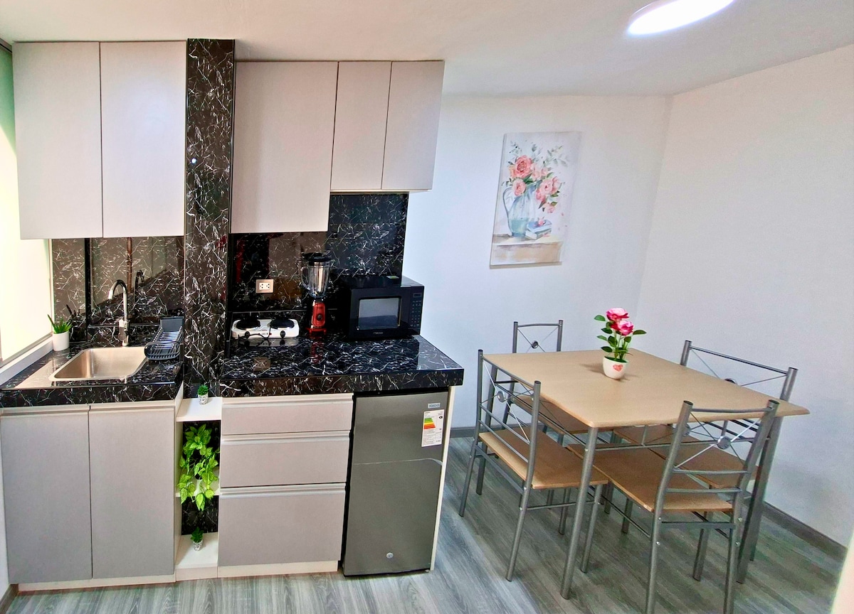 Desfrute de uma experiência elegante neste alojamento central. Estúdio moderno projetado para oferecer conforto e estilo em um espaço compacto, mas totalmente funcional. Perfeito para viajantes de negócios, casais ou aqueles que procuram uma escapada tranquila. Possui Wi-Fi de alta velocidade, TV com streaming (Netflix prime), toalhas e roupas de cama inclusas, além de uma cozinha totalmente equipada com tudo o que você precisa para preparar suas refeições. PH, sabonete, xampu de cortesia.