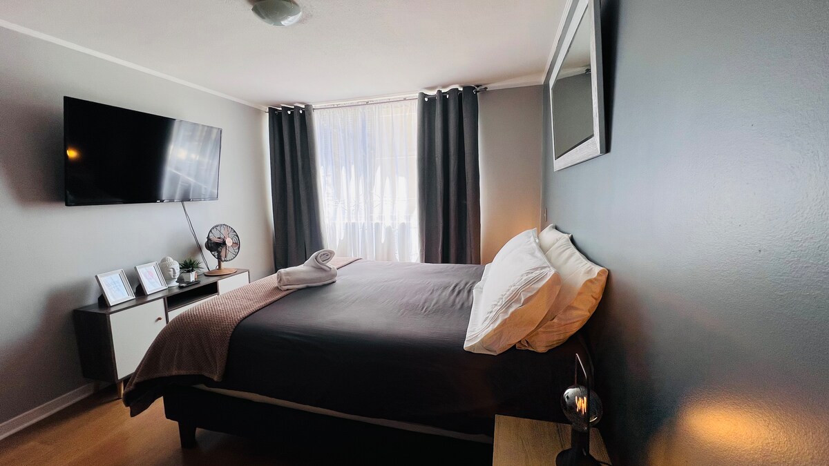 Apartamento moderno e aconchegante com ar condicionado no coração de Santiago. A poucos passos do metrô e do Centro Histórico, cercado por museus, mercados e restaurantes. Cama king size, cozinha equipada, varanda e Wi-Fi rápido, ideal para viagens ou estadias longas. Prédio seguro com concierge 24 horas, 7 dias por semana. Atenção personalizada, check-in flexível e recomendações locais para que você possa desfrutar da cidade como um morador local, com conforto e tranquilidade.