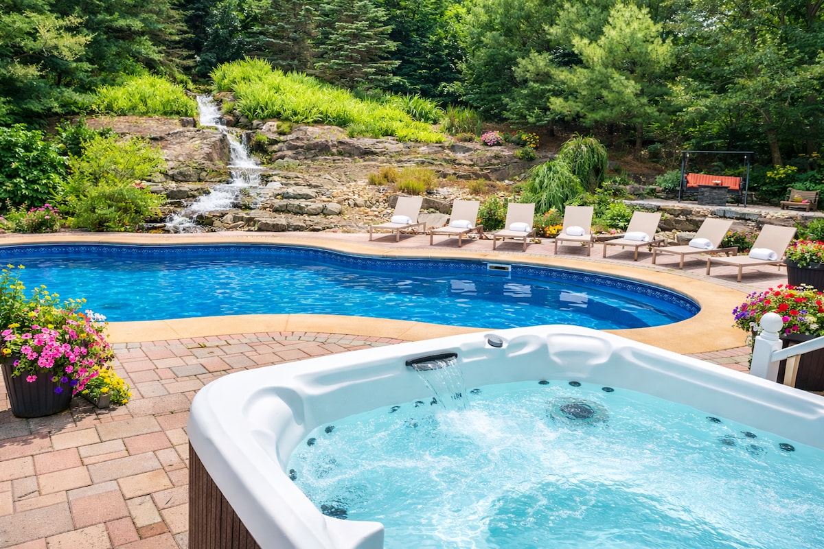 Propriedade nº 1 em Pocono com piscina aquecida, banheira de hidromassagem e sala de cinema