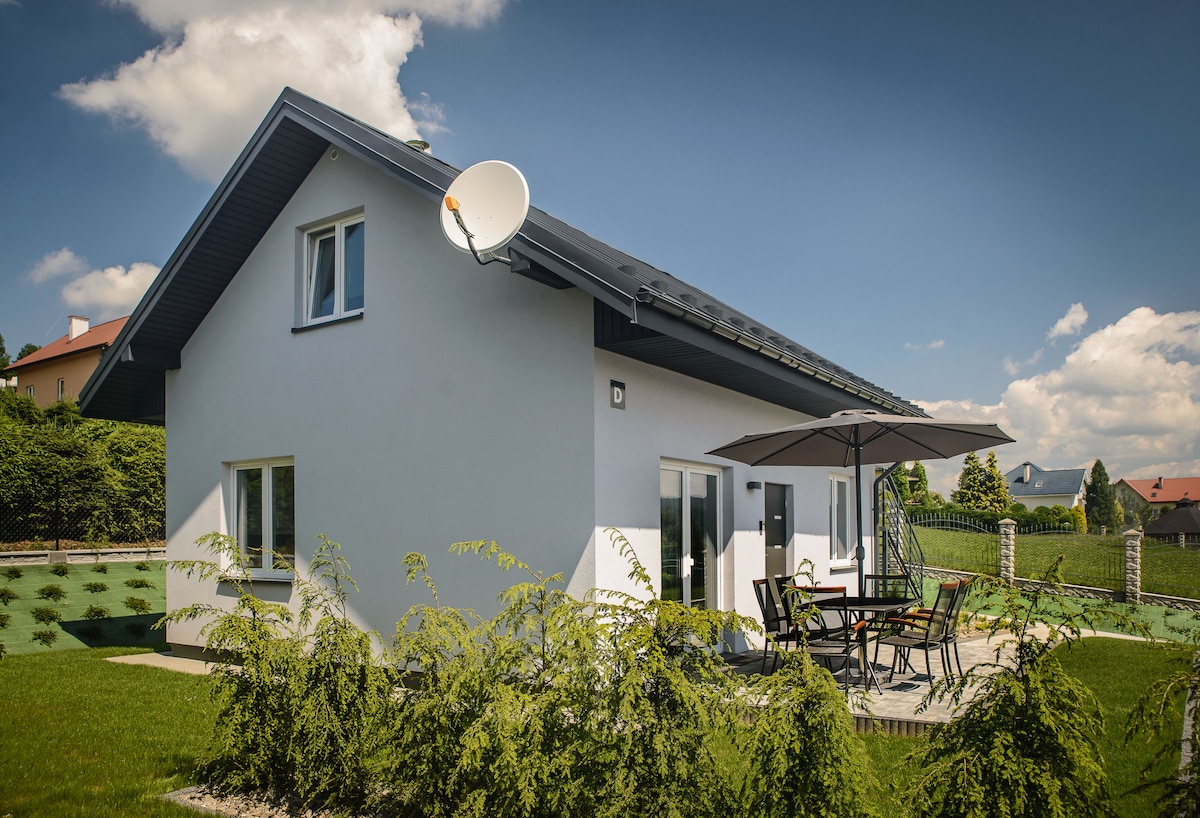 Comfortable cottage opened in June 2021, located in a charming, quiet place, surrounded by a forest. There is a large garden with two ponds at the private disposal of guests. A garden grill/ fireplace are available. Distance to the nearest buildings is ap.100 m. WHAT MAKES US SPECIAL? One house on a large plot, lovely quiet place, no close neighbors, hot tube, high-quality furniture /equipment. If you don't like relaxing in the crowd - our house is just for you!