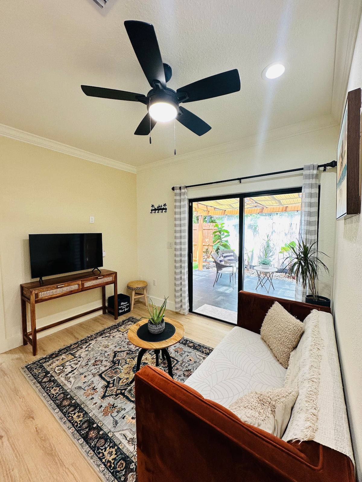 Enjoy comfort in this cozy studio with its own entry, kitchen, and bathroom—perfect for solo travelers or couples. Located just 10 minutes from Deerfield and Pompano Beaches. Studio: - Queen bed - 55" Smart TV - Wardrobe - Nightstand Bathroom: - Shower - Body wash/shampoo/conditioner - Hair dryer and straightener Kitchen: - Mini fridge - Microwave - Air fryer - Cooktop - Silverware/plates/glasses Patio: - Two chairs and a table Your peaceful South Florida stay starts here!