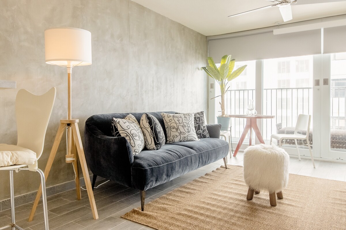 Esta unidade luxuosa está localizada em um edifício moderno de grande altura em uma área em ascensão na ilha de Old San Juan, a apenas uma milha da antiga cidade espanhola e perto de Condado. A localização é perfeita para acessar a famosa praia de El Escambron (a apenas 1 quarteirão de distância!), muito popular entre os surfistas. É uma joia recém-reformada de uma unidade de condomínio estilo loft com tetos de concreto expostos e vigas com janelas do chão ao teto voltadas para o norte em uma unidade de canto com ampla luz solar durante todo o dia.