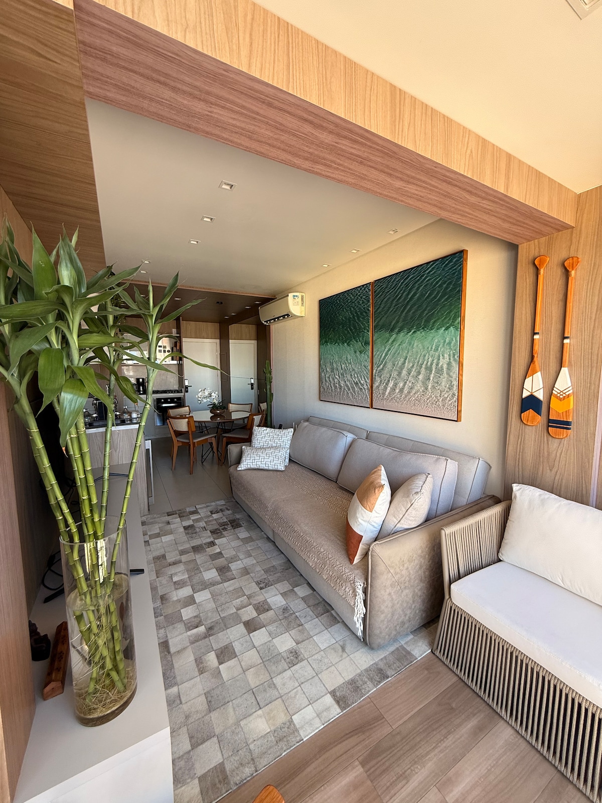 Estúdio com cama king-size perto da beira mar