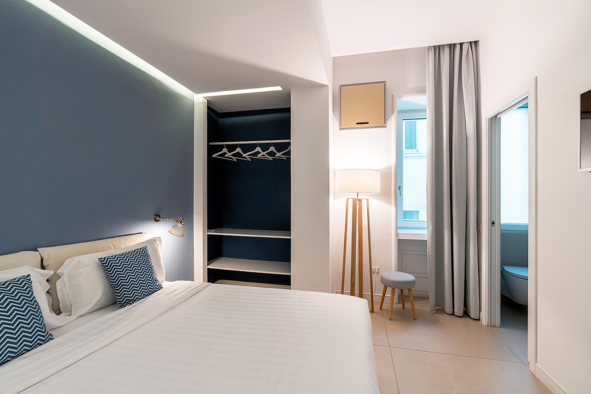 La camera Matrimoniale è un elegante e moderna camera al centro di Salerno con letto Big Size (160 cm x 200 cm) con bagno privato e doccia. A disposizione degli ospiti un frigobar e set per la preparazione di the e tisane. Inoltre Wi-Fi gratuito, aria condizionata e TV HD 32 pollici.