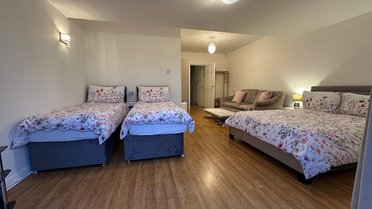 Quarto duplo espaçoso em Poole com vibração costeira