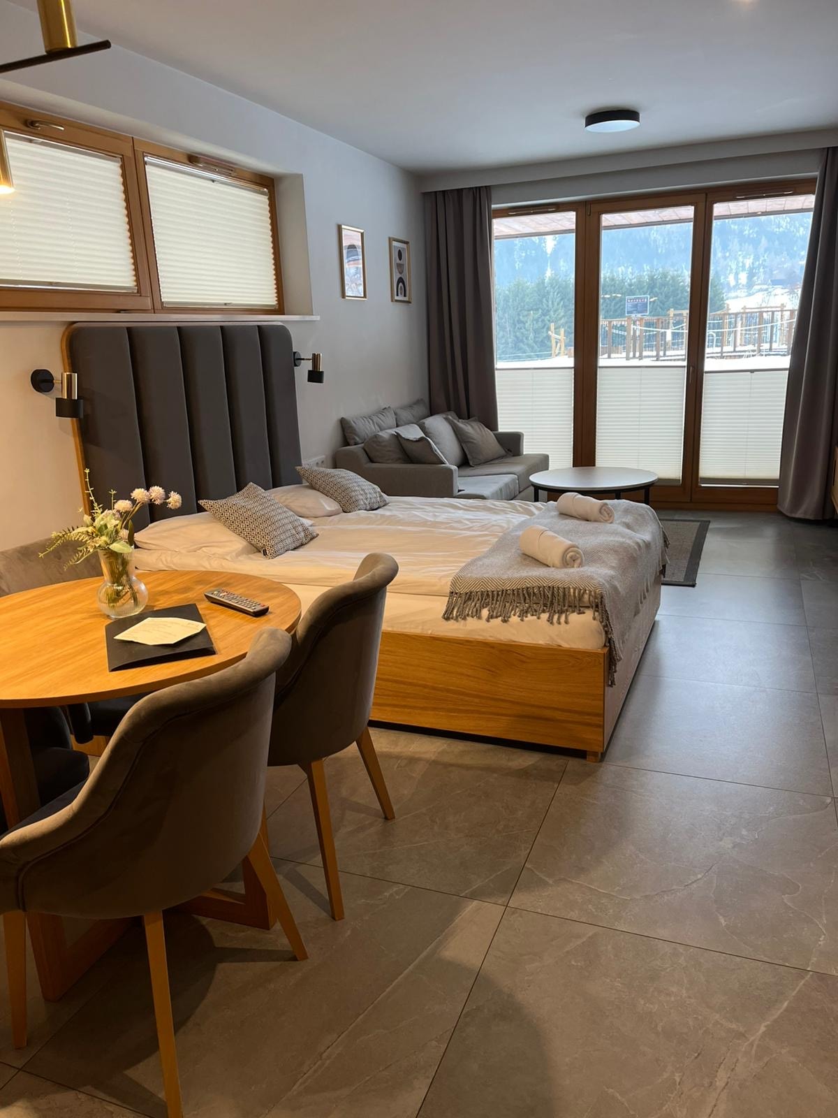 Apartamento espaçoso com 2 camas e vista para a montanha