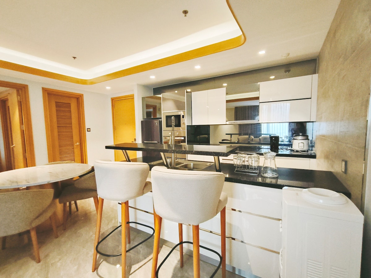 É a unidade mais luxuosa e espaçosa em One Euphoria. 1 quarto, vestiário, uma espaçosa sala de estar, uma cozinha irlandesa e um terraço. Há duas TVs instaladas no quarto e na sala de estar No telhado do edifício, você pode usar com segurança várias instalações, como academia, piscina e bar. Muito perto da Rua Vermelha (Rua de Caminhada) e do Cassino.