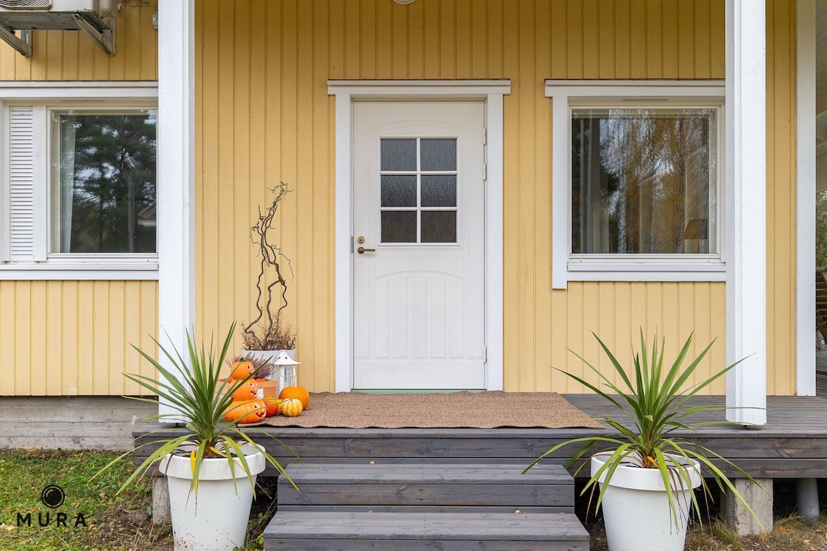 Uma cabana de madeira centenária em uma pequena aldeia rural, no pátio da casa principal, a apenas 20 km de Pori! Cozinha ao ar livre bem equipada na área da sauna, refeições junto à ilha e um pequeno grupo de assentos. Camas na varanda para dois, banheiros modernos e uma sauna a lenha, e um banheiro separado. Bomba de calor de ar aquece/resfria, fogão, terraço e grelha com carvão vegetal. Roupa de cama e toalhas estão incluídas. Você pode estacionar seu carro bem na frente da porta, também há espaço para um trailer ou uma caravana.