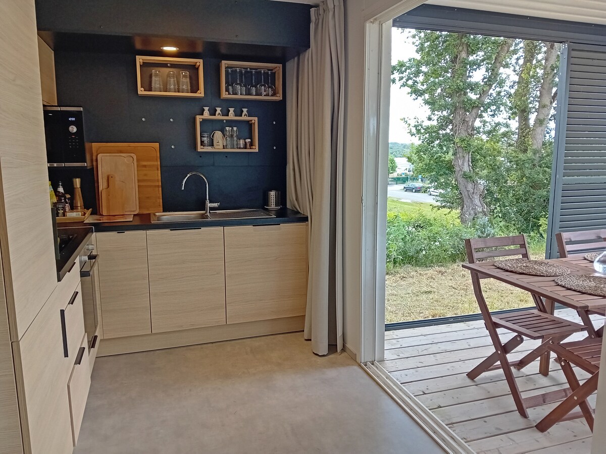 Casa móvel com jacuzzi, acampamento 4* à beira-mar