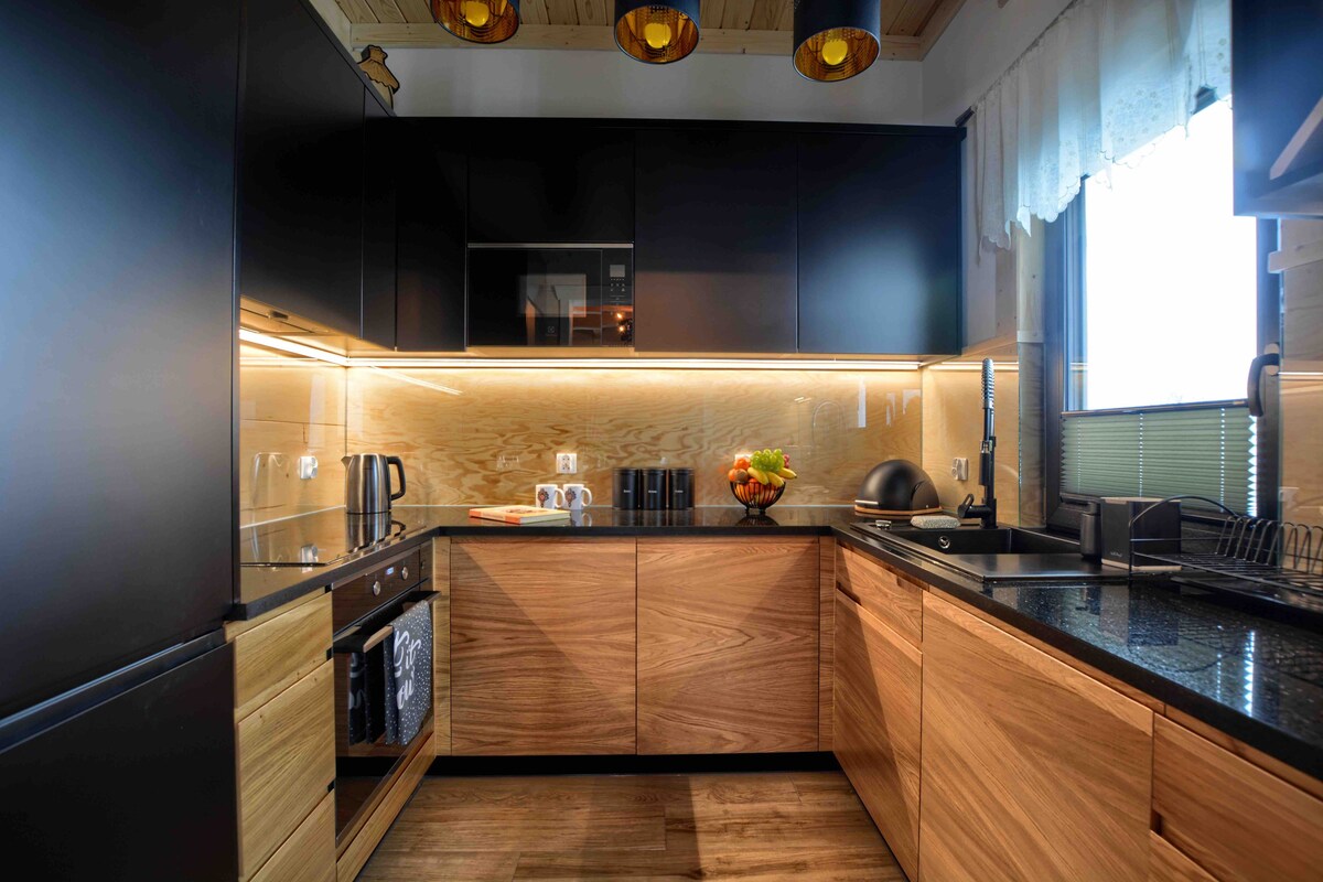 HONAY HOUSE is a cozy and modern cottage with a stunning and unique view of the High Tatra Mountains. Our house is perfectly crafted for everyone who is searching for wild nature, active recreation or just a refuge from the crowded resorts of Podhale. It`s a peaceful location. As a designers we took care of every detail to let you experience a high-quality interior that is extremely natural and warm. Outside the house you can also enjoy wooden chill deck. Welcome to stay on our hill.