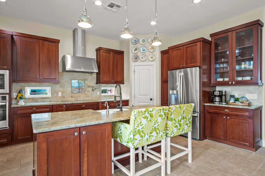 A idade mínima do locatário principal deve ser de 25 anos Casa recém-construída 4QT/3BA em 2021. Piscina privativa. Localizada na zona de carrinho de golfe e a uma rápida viagem de 4 minutos da praia ou a uma caminhada de 11 minutos. Você pode ouvir o surf à noite da espaçosa varanda do andar de cima. O plano de piso aberto acomodará 10 pessoas muito confortavelmente. Aproveite o tempo ao redor da piscina ou sente-se sob a varanda coberta. Há muito estacionamento para 4 veículos e um barco. Estamos prontos para você!