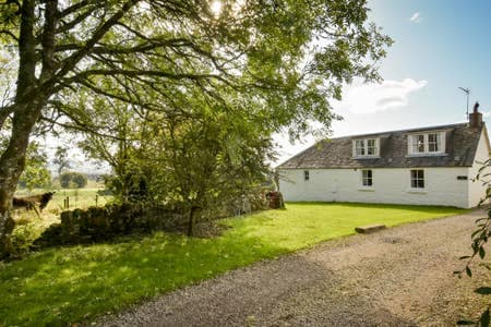 Espaçosa casa de campo à beira do rio a 2 km de Crieff, com vista deslumbrante para o sul e varanda coberta sobre o rio. Situado no terreno da casa privada vitoriana. Recentemente reformado com vistas espetaculares sobre os campos. Inclui cama superking de 1800 cm, banheira e chuveiro. Perfeitamente situado para explorar e apenas a 10/20 minutos dos únicos dois restaurantes 2* Michelin na Escócia. Agora também temos uma casa de banho exterior no jardim, onde você pode relaxar e apreciar a vista ao lado do rio.