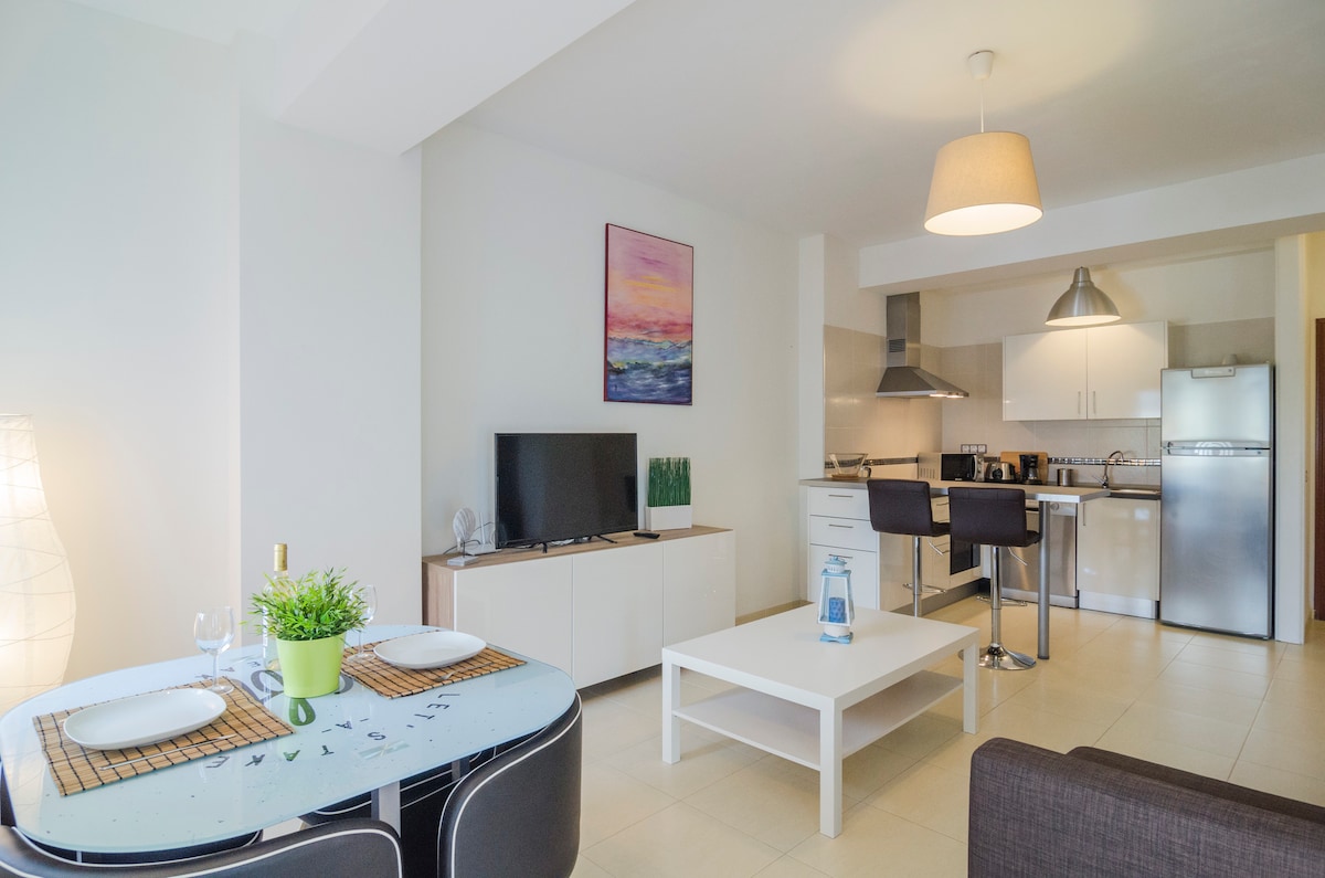 A acomodação é espaçosa, iluminada e externa. Está totalmente equipado para tornar a sua estadia confortável e agradável. A sala de estar é muito aconchegante, com um sofá-cama e uma TV de tela plana inteligente 4K. Nas proximidades, você encontrará ótimas ofertas gastronômicas e de lazer, como o Mercado de la Recova. Perto de museus como CHÁ e MUNA. A praia de Las Teresitas fica a apenas 15 minutos de carro. Excelente conexão: ponto de táxi, ponto de ônibus, bonde e estacionamento público 24 horas a uma curta distância a pé.