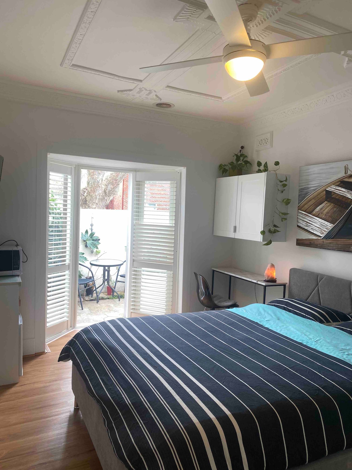 - Estúdio Art Déco em um dos subúrbios mais convenientes e frondosos de Melbourne, posicionado em uma rua arborizada tranquila. +Tudo a uma curta distância a pé da praia e de todas as comodidades desejáveis. 2 minutos a pé até as 3 rotas de ônibus diferentes +400 metros para a praia de Elwood, lojas, restaurantes e bares + Estúdio inteiro com cama Queen size, frigobar, micro-ondas, chaleira, torradeira, louça e talheres, banheiro privativo e mesa e cadeira de estudo com entrada separada e pátio privativo. Chá, café no quarto.