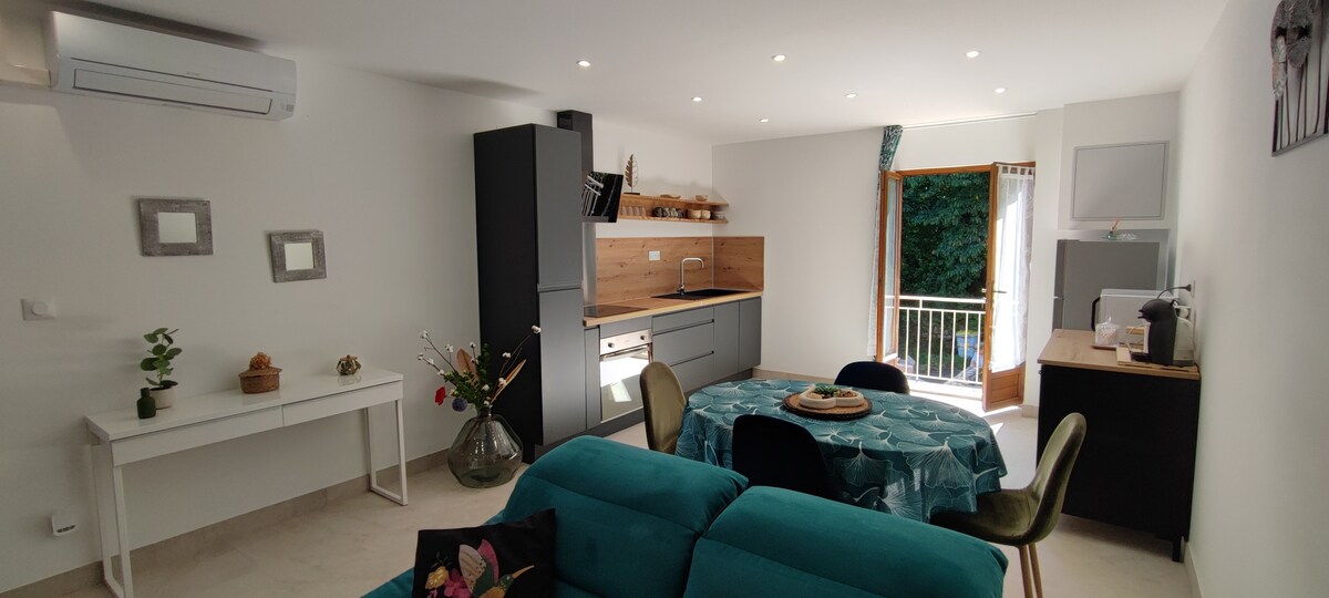 Acomodação completamente renovada, onde você pode desfrutar tranquilamente sozinho, como casal, com a família ou até mesmo com amigos, o cenário bucólico do Hameau de CHAMPCLAUSON (Comuna de La Grand Combe) localizado no Cevennes! A partir do apartamento você pode descobrir 1 minuto de carro ou 10 minutos a pé DINOPEDIA (colina inteira dedicada a dinossauros animados). Extraordinário para crianças!! Mas também caminhadas inesquecíveis nas Cevennes ou passeios de mountain bike. IDEAL PARA RECARREGAR AS ENERGIAS